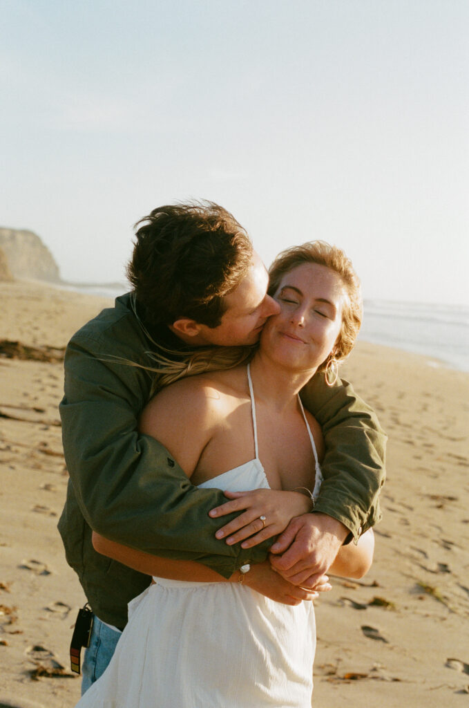 Now approaching golden hour, it was time for the grand finale of their session at Scott Creek Beach, a beach at the base of a hill along Highway 1 near Davenport, CA, rugged and surrounded by sand dunes and dramatic cliffs. At this point, we had spent a couple hours shooting together, so they were feeling relaxed as they ran around the beach and climbed up the dunes.